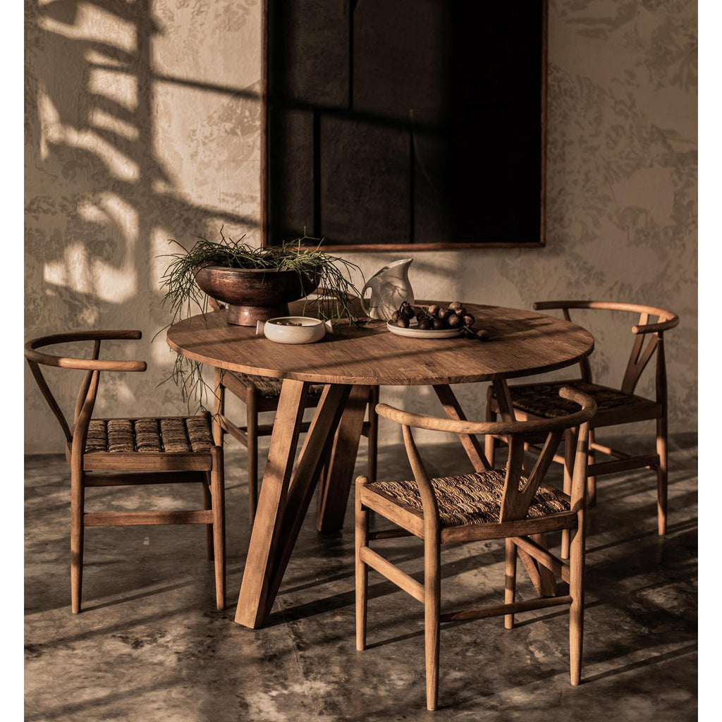 Inspirée du design et de l’artisanat traditionnels javanais, ce meuble est fabriqué avec soin à partir de matériaux d’origine naturelle. La structure de la chaise est sculptée dans du bois de teck récupéré tandis que le siège est en rotin tissé à la main. Évoquant la vie insulaire rustique et intemporelle, cette chaise est un excellent choix pour une maison.