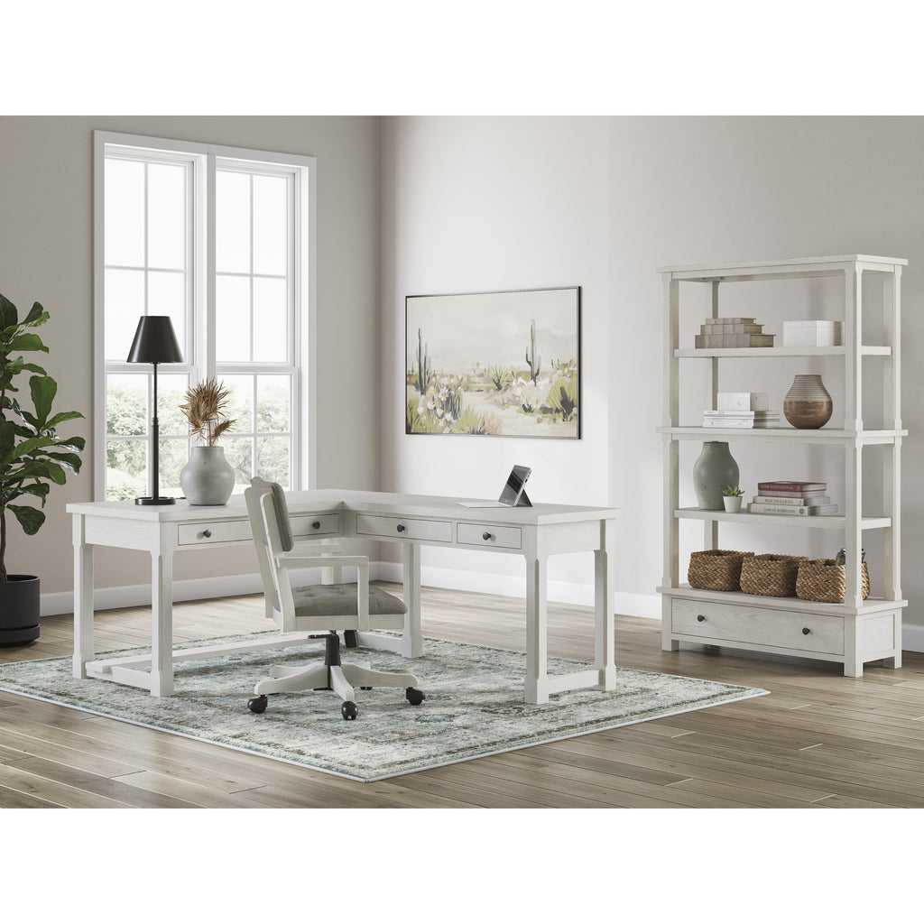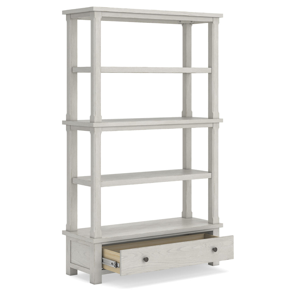 Cette bibliothèque vous impressionnera sûrement au moment d’étudier ou de travailler de la maison. Avec sa finition blanche vieillie et sa texture de grain de bois, les postes de travail modernes de style ferme n’ont jamais été aussi à la mode. Le design à quatre étagères ouvertes — deux réglables et deux fixes — est idéal pour le rangement et l’exposition de vos trésors. Et ce grand tiroir de rangement ajoute encore plus de fonctionnalités à votre espace de travail. Tout ce qui manque, c’est toi.
