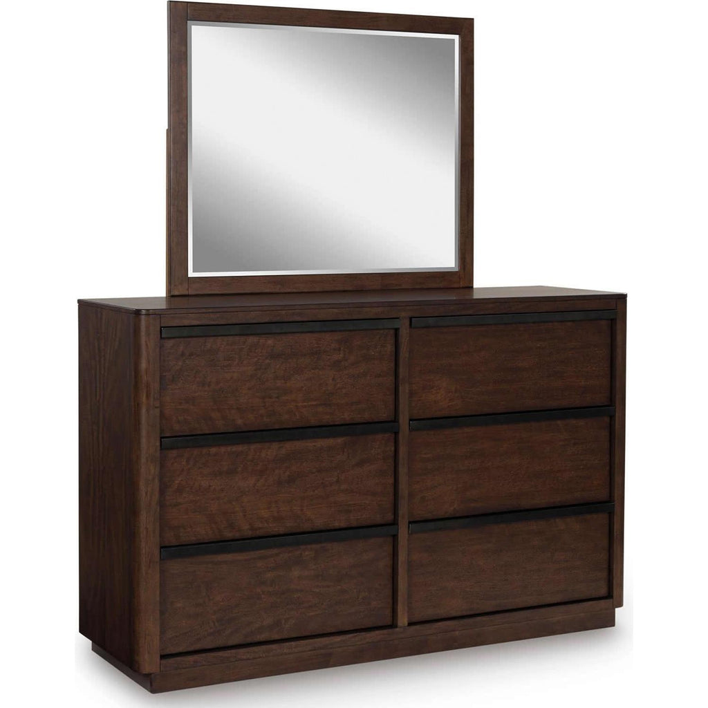 Un style contemporain décontracté avec une ambiance résolument moderne. Cette commode avec miroir est chaleureuse et accueillante avec une riche finition brun foncé, ornant votre retraite reposante avec une élégance tendance. Les poignées en métal pleine longueur au fini noir mat ajoutent une touche subtilement cool aux tiroirs de rangement spacieux. Quelle façon tout simplement étonnante de réaliser la chambre de vos rêves.