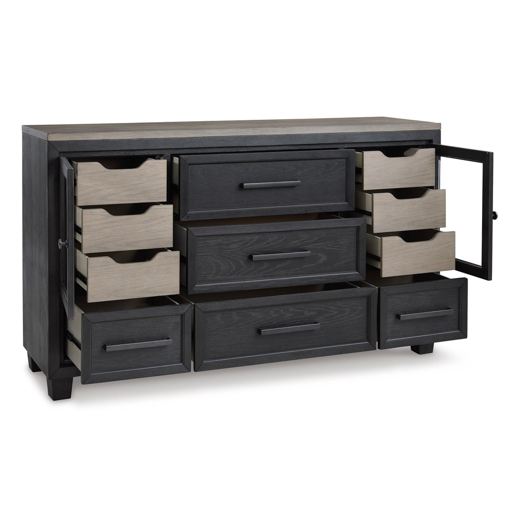 Cette commode est un style contemporain décontracté, tout simplement réussi. Sa palette de couleurs bicolores présente une riche couleur principale noire brossée accentuée par un magnifique ton de bois brun grisâtre poussiéreux. Avec 11 tiroirs à fermeture douce (trois situés soigneusement derrière chaque porte), cette commode offre de nombreux rangements pour répondre facilement à vos besoins de garde-robe.