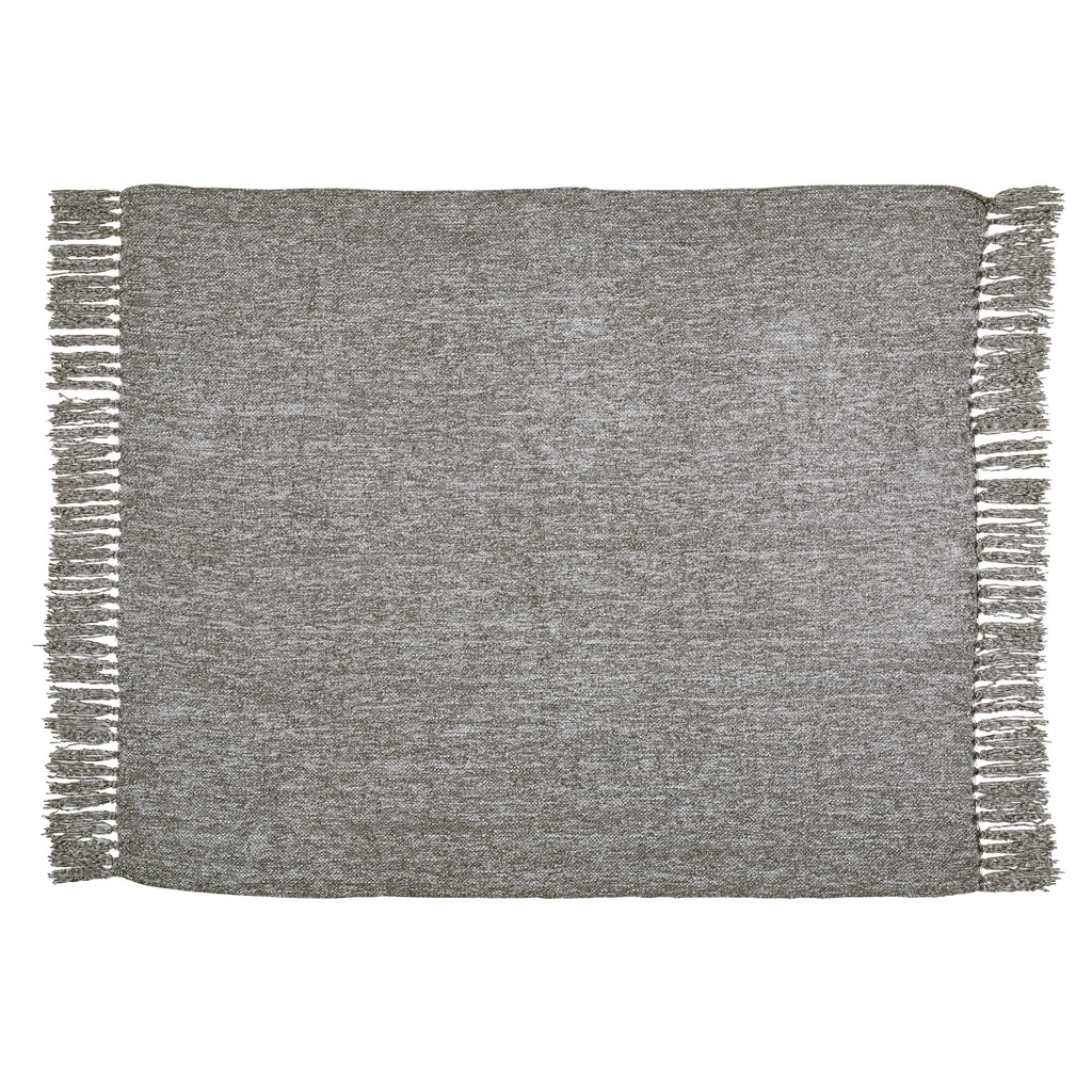 Cette couverture grise est une pièce agréable à porter et à associer avec un look élégant. Qu'elle soit drapée sur l'accoudoir d'un canapé ou pliée au pied d'un lit, sa texture tissée et ses franges nouées lui confèrent un aspect artisanal, décontracté et accueillant.
