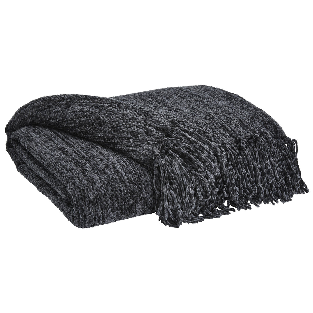 Cette couverture noire est un élément de décoration très agréable à porter. Qu'elle soit drapée sur l'accoudoir d'un canapé ou pliée au pied d'un lit, sa texture tissée et ses franges nouées lui confèrent un aspect artisanal, décontracté et accueillant.