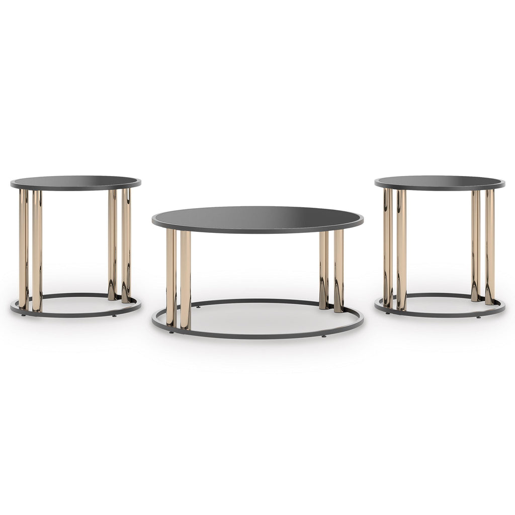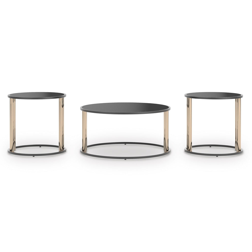 Rassemblez un look moderne et élégant avec cet ensemble de table. Les plateaux arrondis en verre noir offrent le perchoir parfait pour les boissons, les collations ou les décorations. Des pieds couleur laiton bien dessinés offrent un contraste saisissant avec les montures noires mates. Avec une table basse et deux tables d’appoint, cet ensemble de table élégant complète facilement d’autres pièces contemporaines.