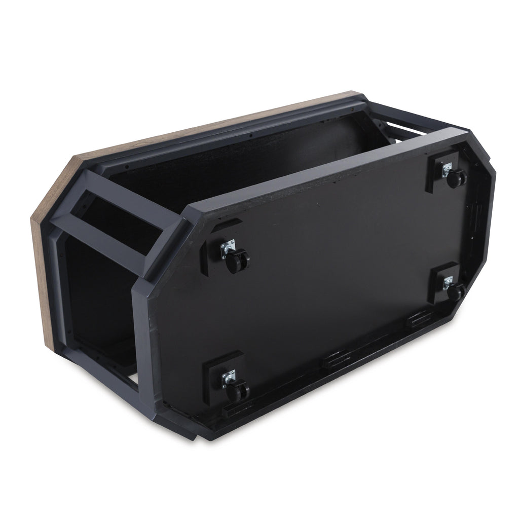 • Fabriqué en bois feuillu massif, placage en mindi et subjectile MDF