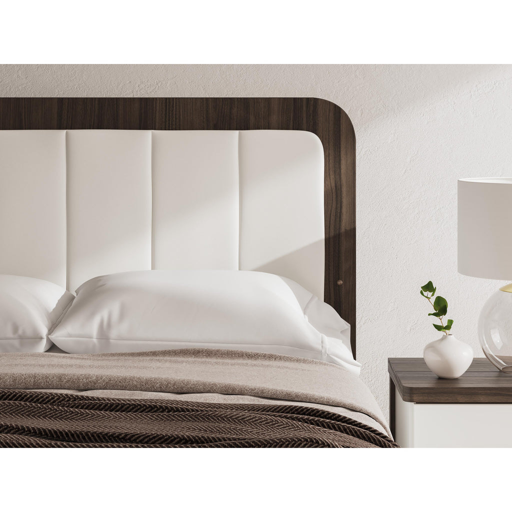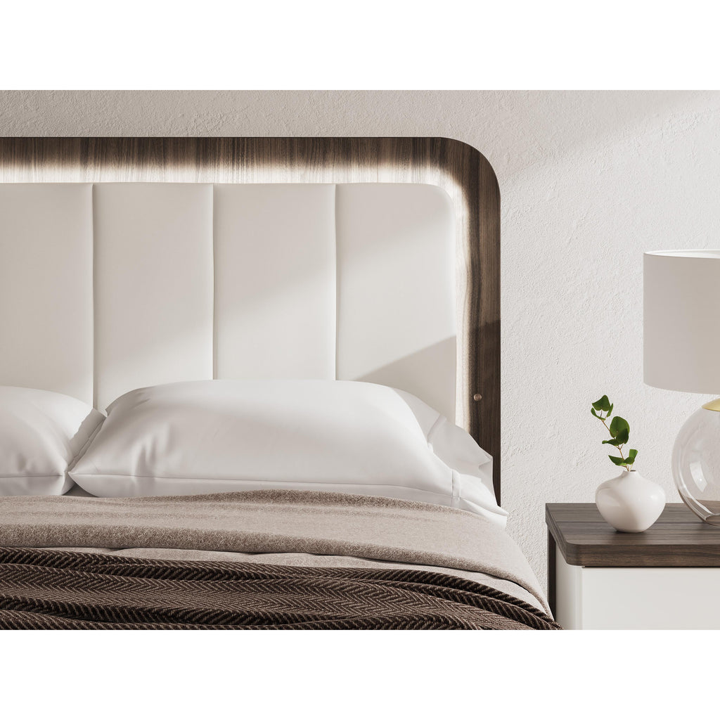 Vous cherchez à faire une déclaration subtilement frappante dans votre chambre à coucher? On s’occupe de toi. Le traitement sophistiqué bicolore de ce lit queen rembourré marie une finition brun chaud sur un grain de noyer répliqué avec une finition blanche mate. Rehaussée d’un magnifique faux cuir blanc, la tête de lit offre un éclairage ambiant chaleureux pour cette ambiance chaleureuse que nous aimons tous au coucher. Les coins arrondis dégagent une aura de panache moderne. C’est une leçon magistrale sur le caractère contemporain mais confortable.