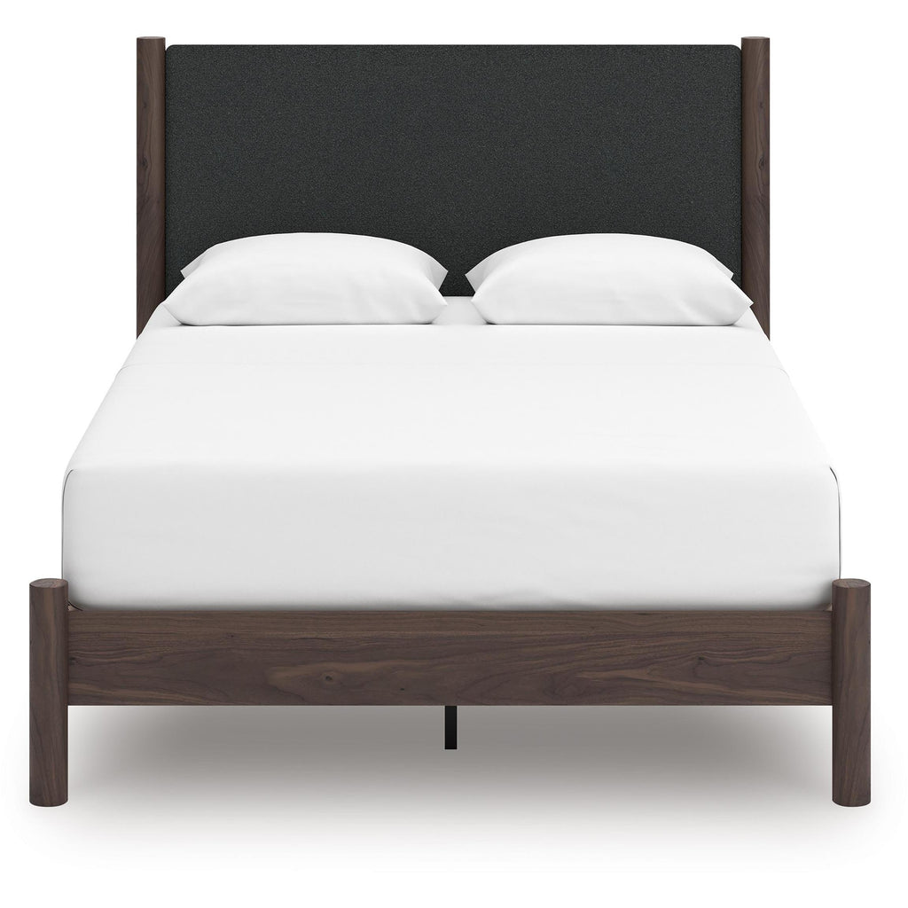 Conçu à la fois pour la forme et la fonction, ce lit plateforme en panneaux queen rembourré apporte une touche de caractère rétro-cool à votre esthétique bohème moderne. Le tissu texturé noir de la tête de lit ajoute une touche tendance à droite à la silhouette classique. Chaleureusement accueillant avec une finition brune riche, le lit s’accorde bien avec des teintes atténuées, des tons terreux et d’autres tons neutres. Quelle approche raffinée du style décontracté.