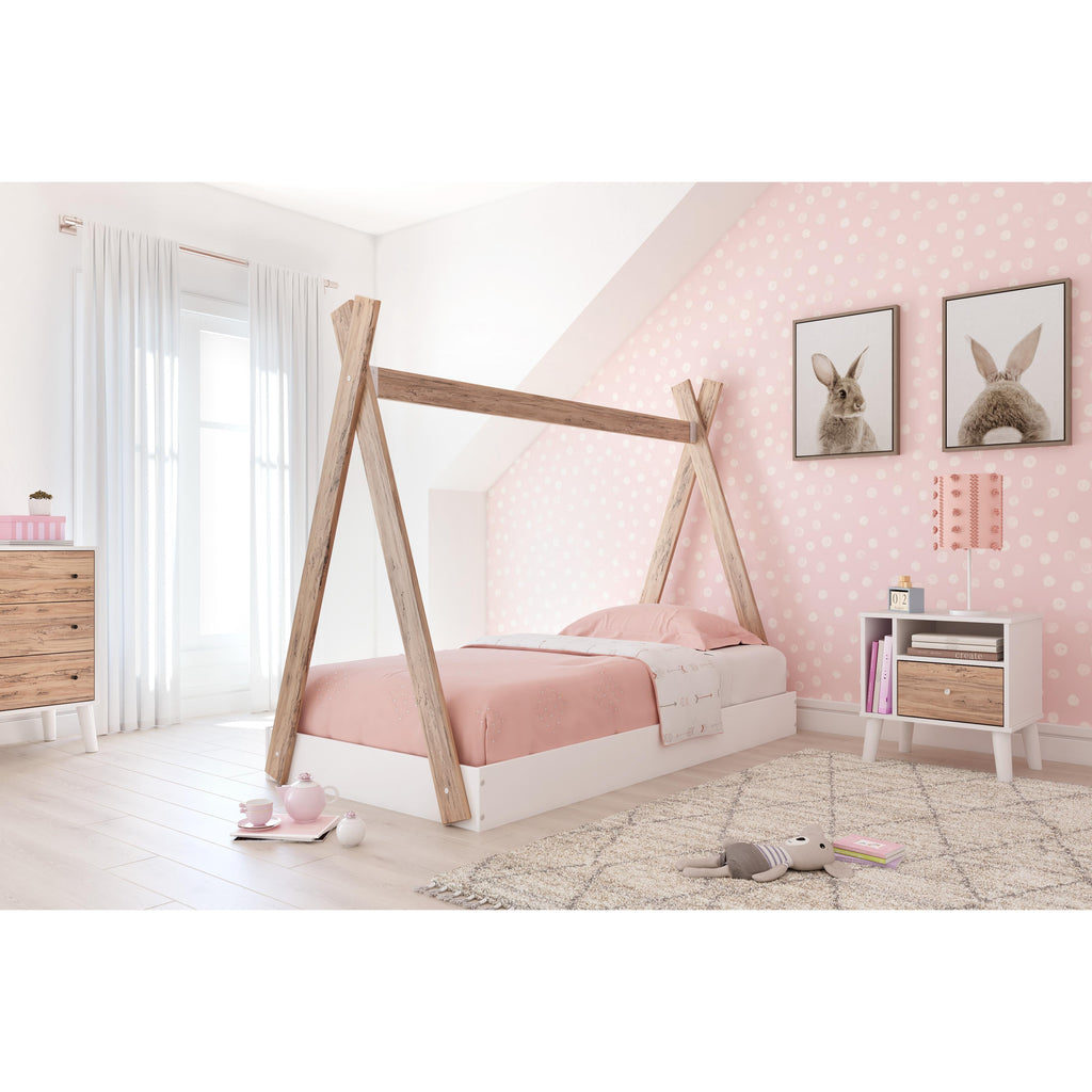 L'aventure vous attend avec ce lit double complet dans une boîte. Le mélange sans effort de styles contemporains et décontractés crée un look bicolore expressif en blanc mat et un motif de grain de bois de cerisier reproduit. Ce lit complet dans une boîte ne nécessite aucune fondation supplémentaire, ce qui en fait un ajout fonctionnel, mais unique, à votre maison.