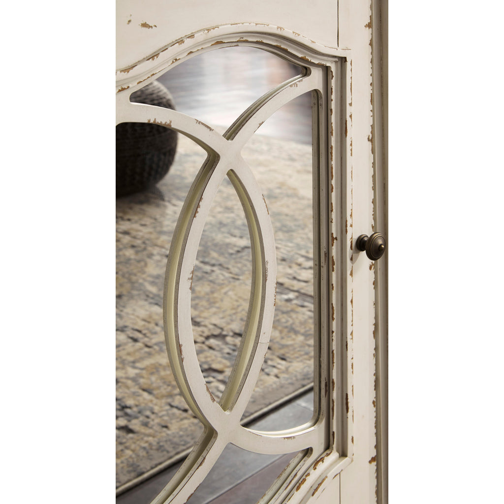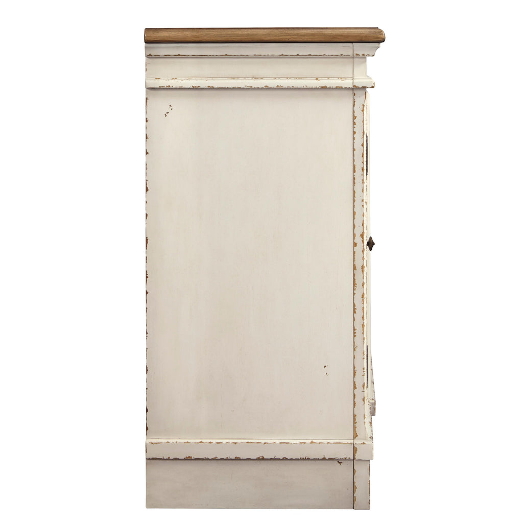 Rehaussant l'art du style cottage traditionnel, ce meuble TV avec option de cheminée s'harmonise parfaitement avec vos goûts. L'esthétique bicolore vieillie mélange un blanc ébréché avec un dessus en bois vieilli pour plus de charme. Le chantournage décoratif des portes d'armoire sur verre miroir ajoute une jolie touche. Compatible avec l'insert de cheminée W100-121 (vendu séparément).