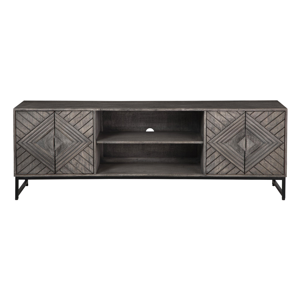 Pour les admirateurs de la sophistication rétro discrète, ce meuble d'appoint complète magnifiquement l'esthétique souhaitée. Le charme classique d'une finition grise vieillie rencontre un style métropolitain chic, avec des façades de porte inspirées de l'art déco et une base industrielle en métal noir. Mélange équilibré de design contemporain et décontracté, cette pièce est la personnification du luxe décontracté.