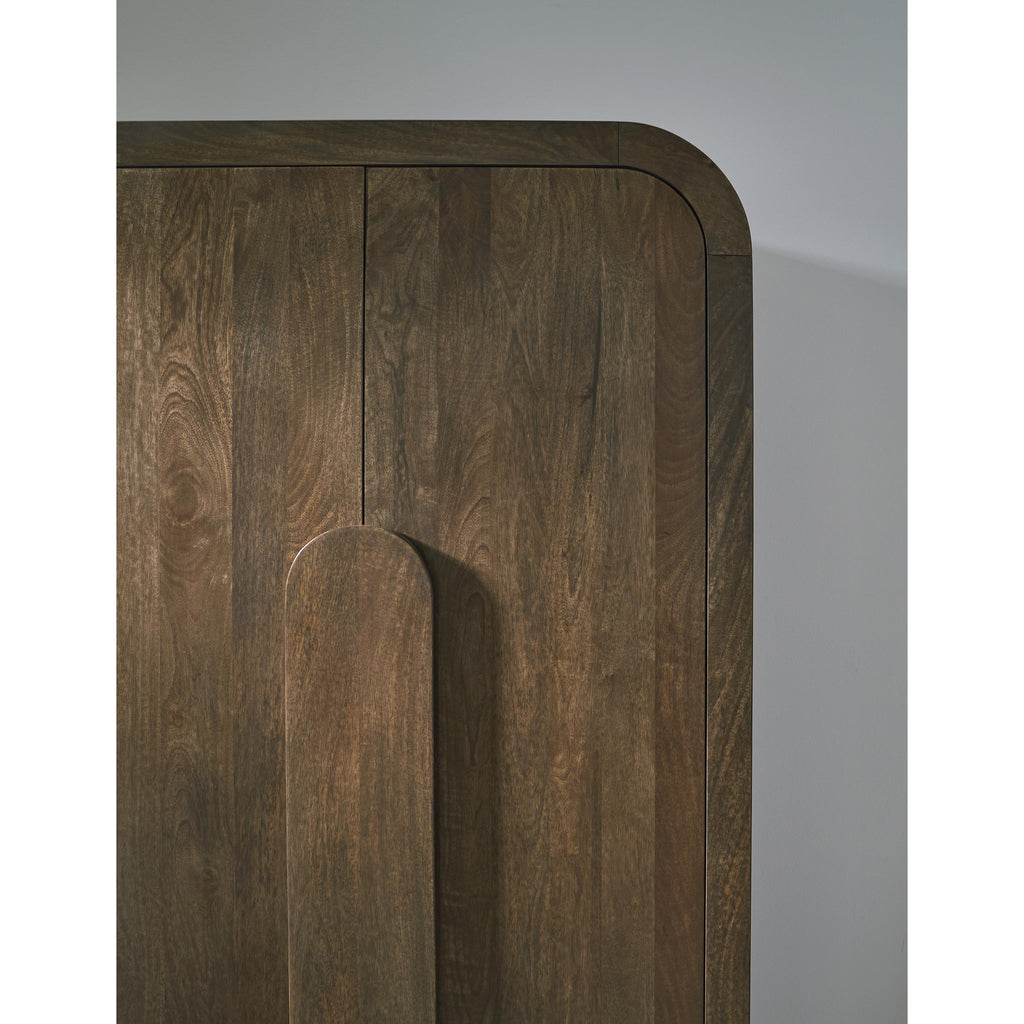 Laissez-vous tenter par l’élégance fonctionnelle avec cette armoire d’appoint. Il met en valeur la beauté naturelle du bois de manguier, avec des coins gracieusement arrondis créant un profil adouci et accueillant. Une finition brun moyen apporte un air de chaleur et d’authenticité à votre espace de vie. Et derrière deux portes à fermeture en douceur, un assortiment d’étagères offre un rangement polyvalent.