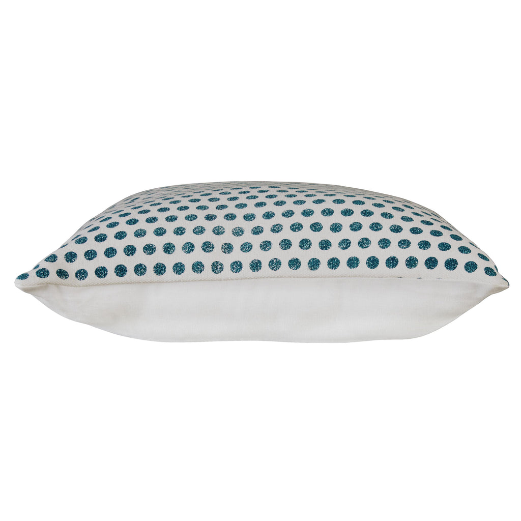 Rehaussez votre décoration intérieure avec l'excitation réservée de ce coussin. Des pois bleu sarcelle décorent un fond blanc, équilibrant un design audacieux avec une construction classique. Associant un look chic à la douceur moelleuse dont vous rêvez, ce coussin constitue un ajout confortable à votre espace contemporain.