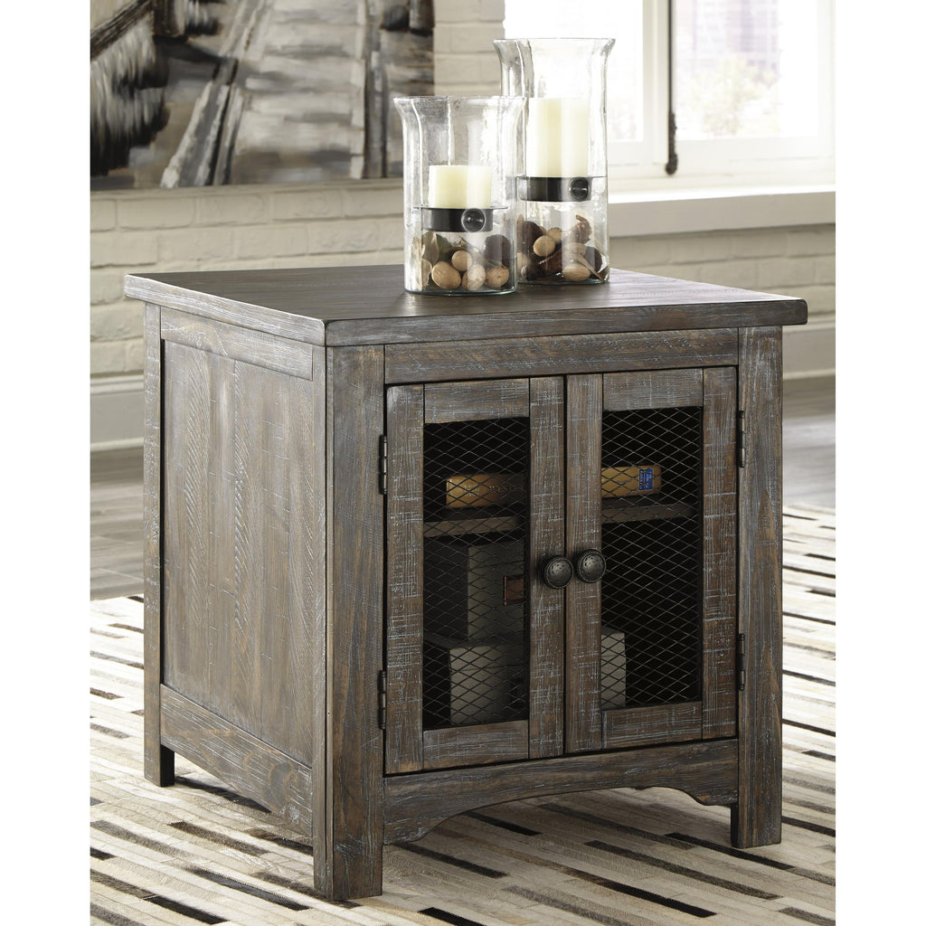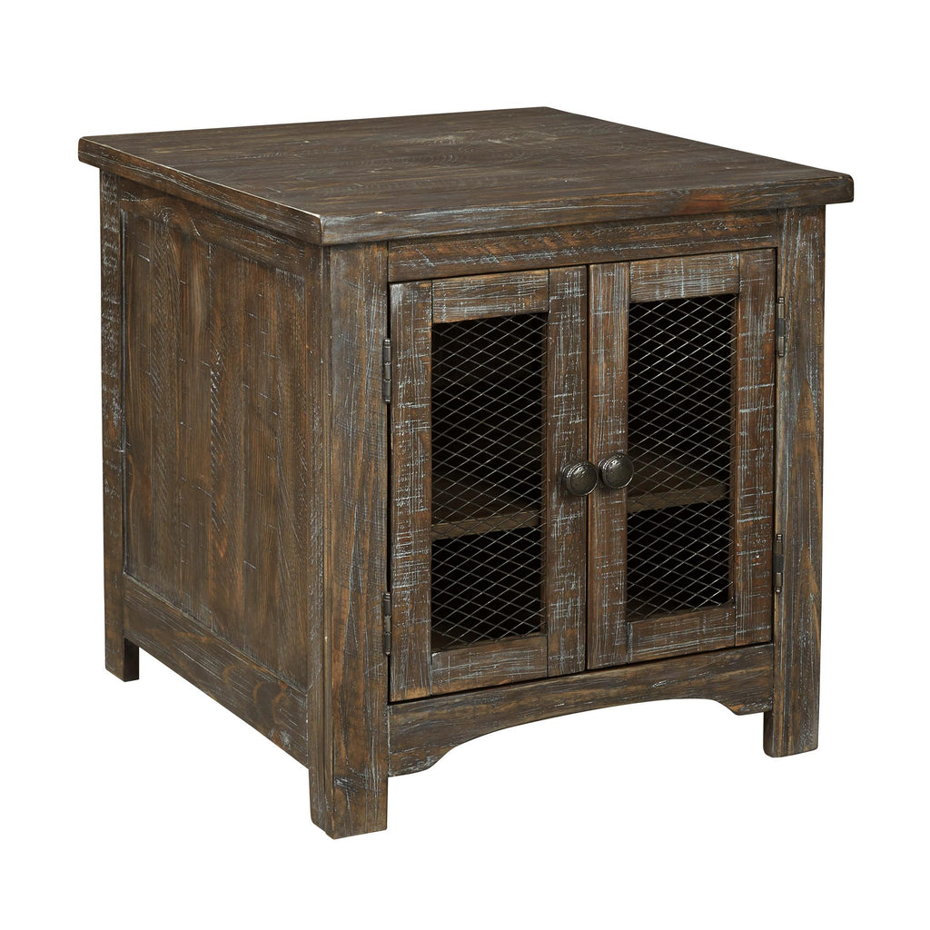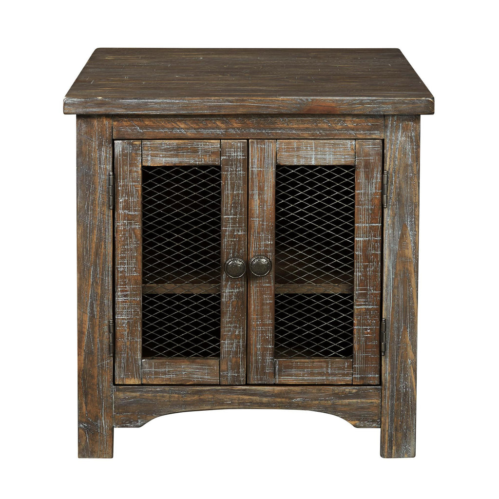 Cette table d'extrémité est beaucoup plus résistante à l'usure. Son profil épuré est enrichi de bois de pin massif traité dans une finition complexe mêlant des teintes grises et brunes. Les portes d'armoire avec une façade en treillis métallique apportent un élément frais campagnard qui est tout à fait dans l'air du temps. Pleine de charme et de possibilités.