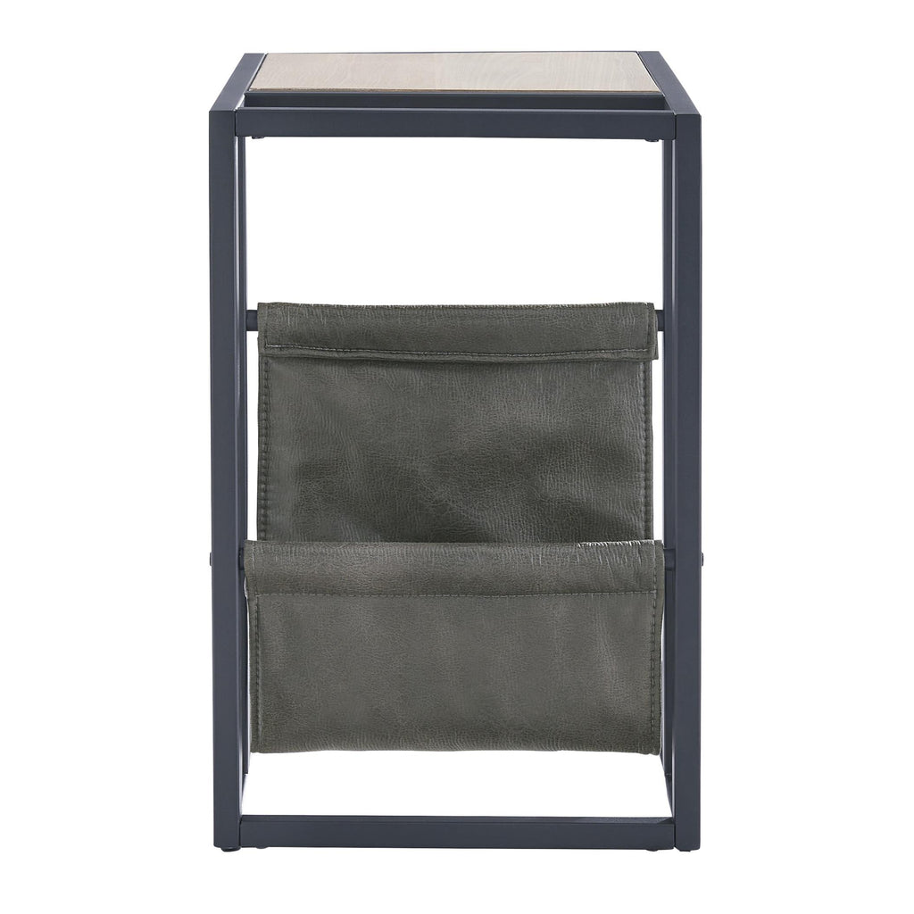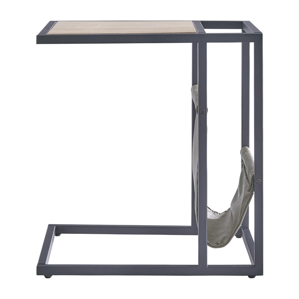 Design contemporain décontracté avec une silhouette épurée. C'est ce qui fait la beauté de cette table de bout de canapé. Fabriquée en placage d'orme de qualité, son plateau est fini dans un ton de bois naturel clair qui lui confère un aspect frais et organique. La structure en C en métal au fini noir mat et le panier à magazines suspendu en similicuir brun durable s'harmonisent parfaitement avec le profil épuré.
