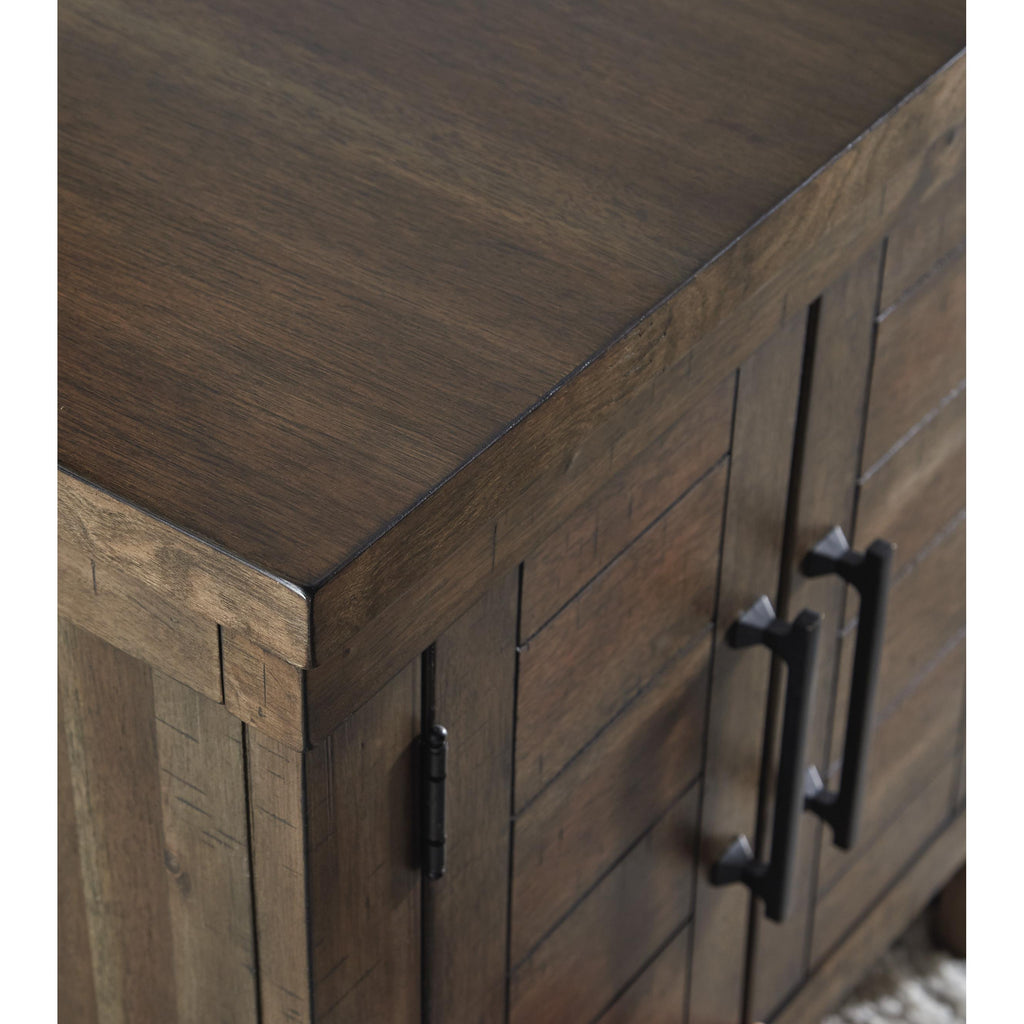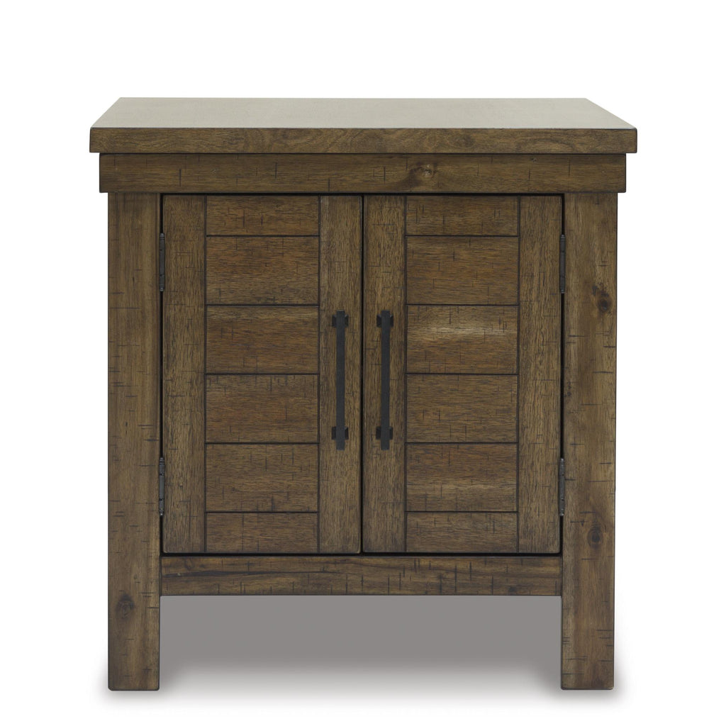 Cette table d'extrémité peut sembler simple à première vue. Mais en y regardant de plus près, on s'aperçoit que la beauté se cache dans les détails. Avec des portes d'armoire à effet de planche, une finition brun tabac et une quincaillerie ton bronze antique, elle est tout simplement rayonnante de charme. Le mélange d'espace de rangement et de table de cette table d'appoint vous servira pendant de nombreuses années.