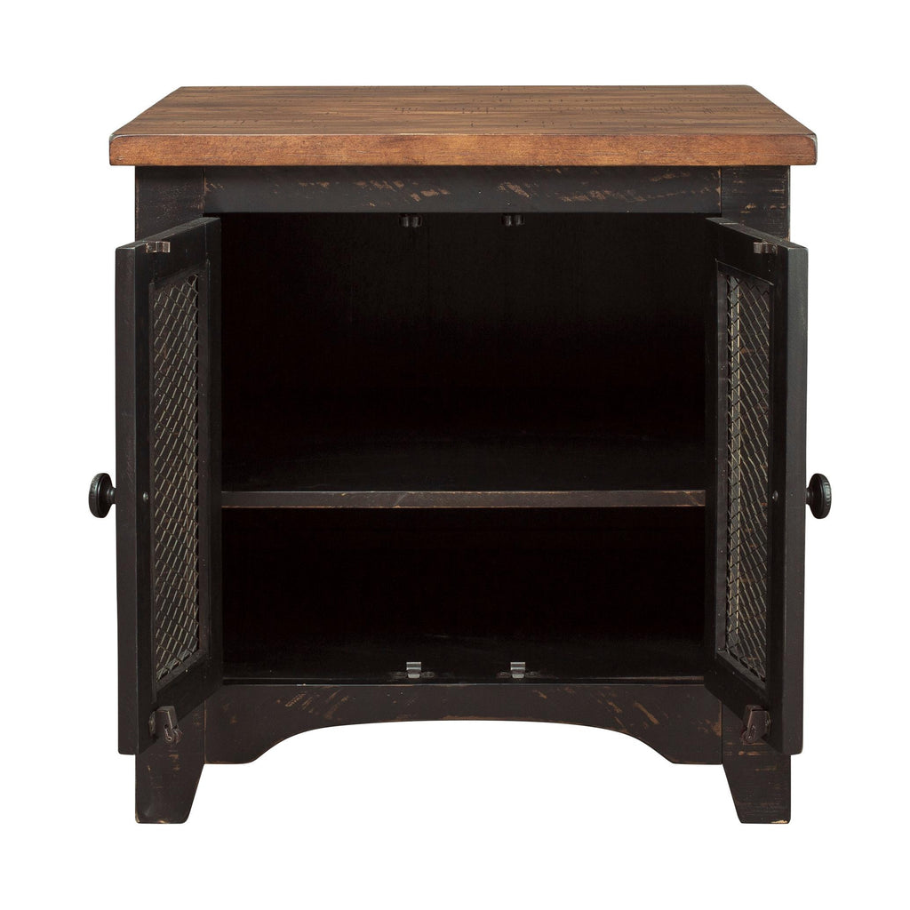 Pour ceux qui recherchent ce qu'il y a de mieux dans la vie rustique campagnarde, cette table d'extrémité bicolore double le charme. Les touches de design comprennent un style d’effet plan, des marques d'usure et des façades de porte en treillis métallique pour plus de caractère.