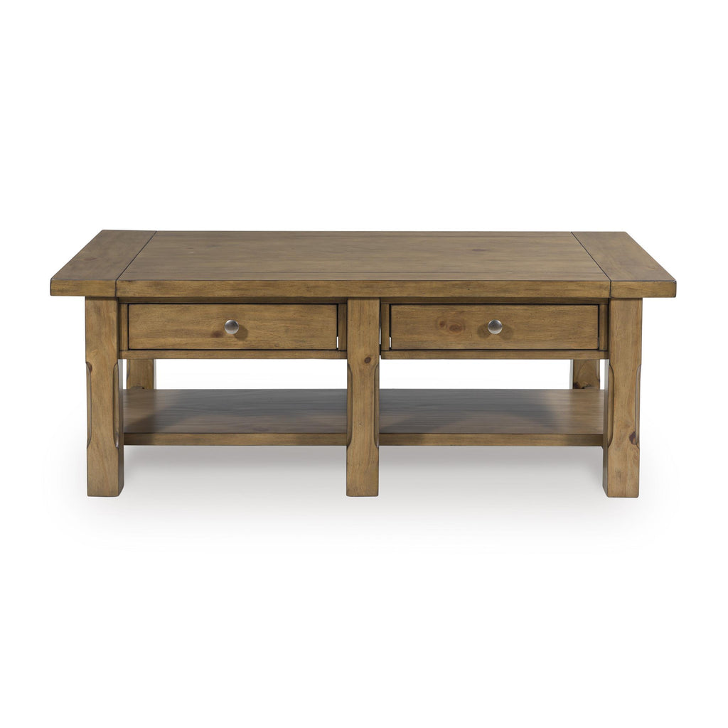 Le style intemporel de cette table basse convient parfaitement aux espaces décontractés et inspirés des fermes. Sa finition polyvalente brun poli s’accorde parfaitement avec les tons neutres et atténués. Avec des tiroirs pour ranger le côté du sofa et une tablette du bas pour exposer la décoration, cette table chic convient parfaitement à la vie quotidienne.