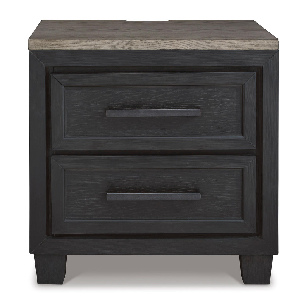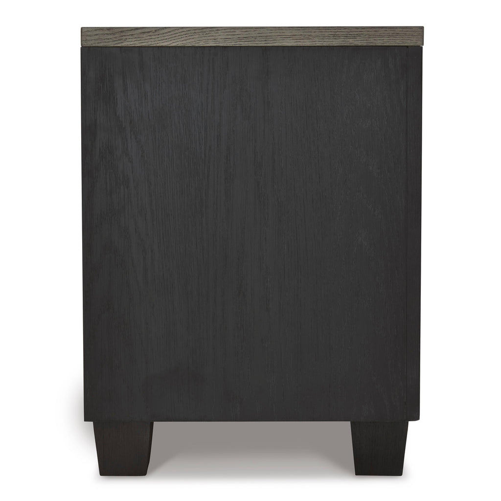 Cette table de chevet est un style contemporain décontracté, tout simplement réussi. Sa palette de couleurs bicolores présente une riche couleur principale noire brossée accentuée par un magnifique ton de bois brun grisâtre poussiéreux. Deux tiroirs avec des poignées noires élégantes offrent beaucoup de rangement pour vos essentiels de chevet. La table de chevet allie technologie et design épuré, avec un double port de chargement USB le long du bord arrière supérieur pour garder vos appareils alimentés toute la soirée.