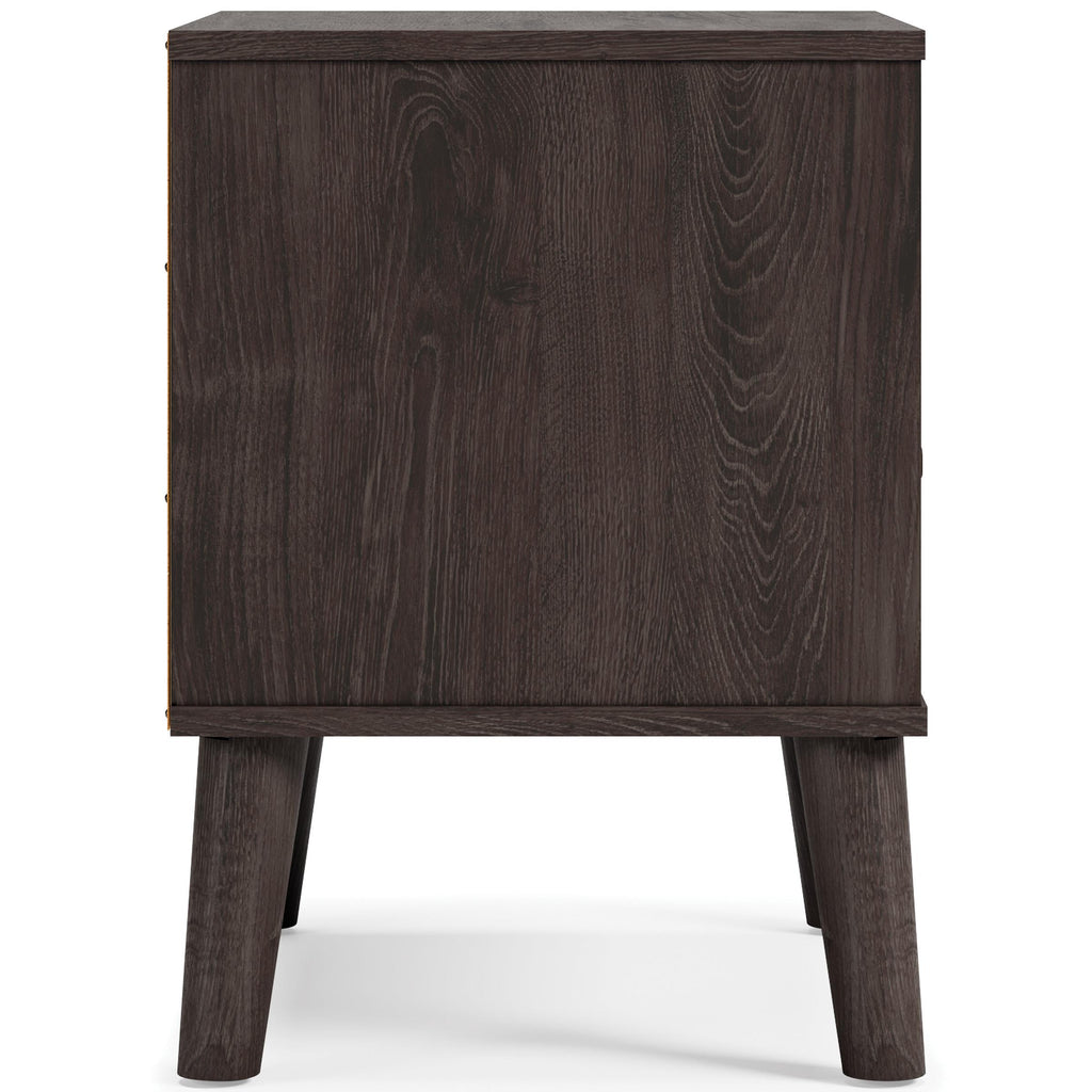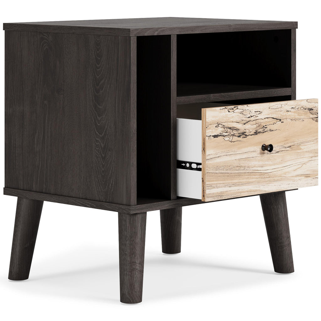Mariage parfait entre style contemporain et décontracté, cette table de chevet est un ajout charmant à votre maison. Elle présente un look bicolore expressif, avec une finition anthracite foncé sur un grain de chêne reproduit avec une touche authentique et un grain de bois de canneberge reproduit. Les boutons noirs mats et les pieds évasés ajoutent une touche finale, tandis que les étagères ouvertes permettent un rangement supplémentaire.