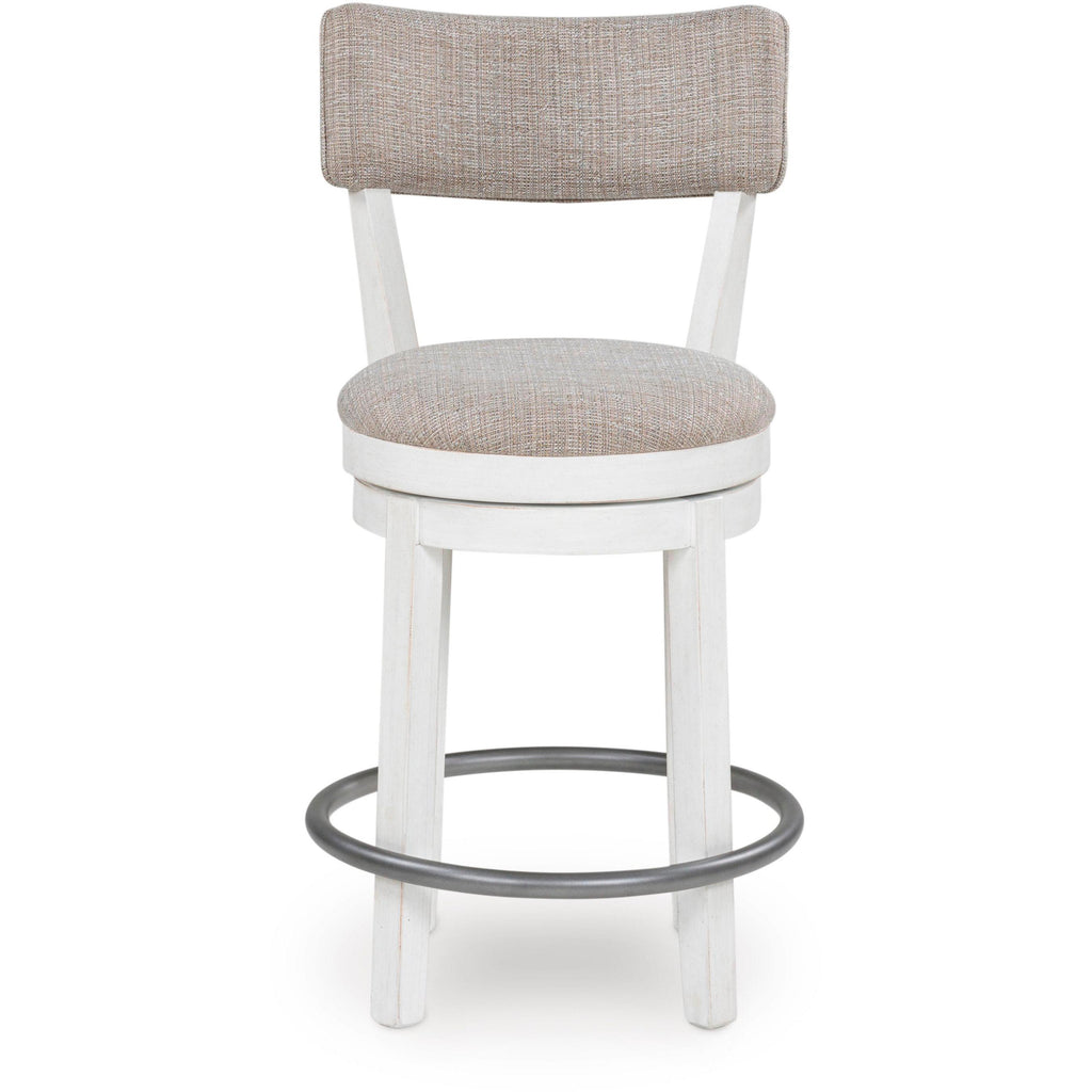 Ce tabouret de bar à hauteur de comptoir va sûrement impressionner au moment du repas. Avec une finition blanche et une sellerie gris pâle, les sièges modernes de style ferme n’ont jamais été aussi à la mode. Vous allez adorer la façon dont son design pivotant sensé vous garde dans le rythme de la conversation. Et que diriez-vous de ce dos magnifiquement courbé? Tout ce qui manque, c’est toi et ta famille.