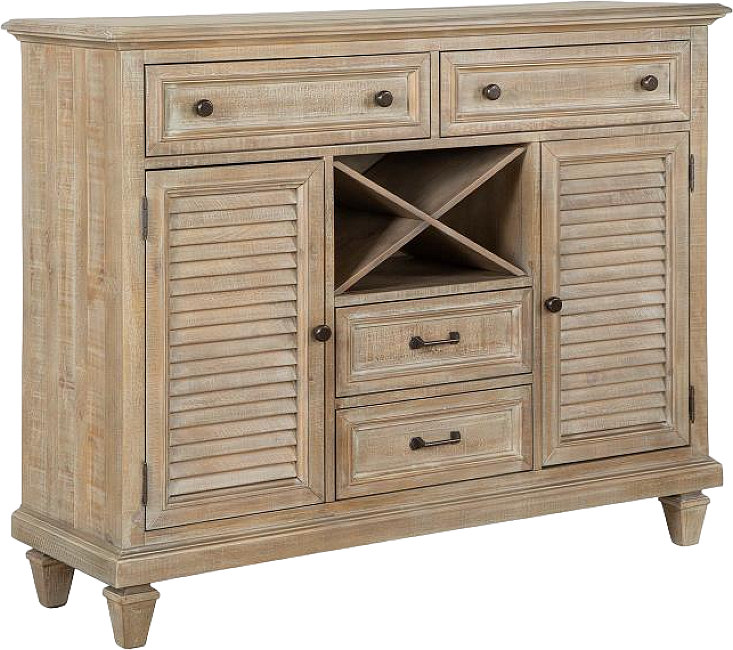 Inspirée par les auberges et les vignobles de la vallée de Napa, la collection de salles à manger Calistoga dégage l'ambiance de la région viticole. Pour ajouter une touche classique et côtière décontractée, des portes en bois à battants sont utilisées sur le serveur, et deux portes à battants sont également placées sur la base de la table de comptoir, avec des étagères réglables à l'arrière. La sélection de pièces distinctives comprend un buffet, un serveur et un meuble de salle à manger avec deux portes en verre encadrées de bois sur le dessus et deux sur le dessous, offrant une commande d'éclairage tactile à 3 voies avec 2 lumières LED. Les options de table comprennent une table ronde de 52 pouces et une table rectangulaire de 68 pouces. Les tables peuvent être rallongées jusqu'à 70 pouces et 86 pouces, respectivement, à l'aide d'une feuille. La table de comptoir rectangulaire s'étend jusqu'à 58 pouces de large x 36 pouces de haut lorsque la feuille papillon est utilisée. Les options de sièges polyvalents comprennent une chaise d'appoint avec siège rembourré et dossier en lattes de bois, une chaise avec siège et dossier rembourrés, un banc avec siège rembourré et garniture en bois, une chaise de forme élégante avec garniture en bois et siège et dossier rembourrés, et une chaise de salle à manger à hauteur de comptoir avec siège rembourré et dossier en lattes.