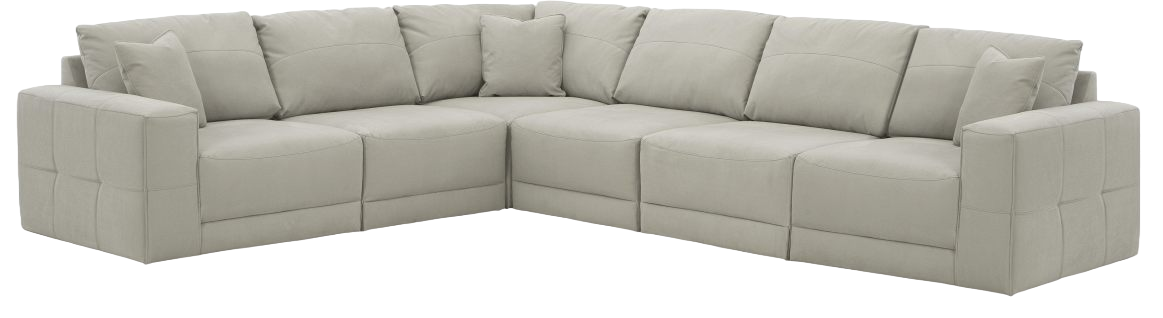 La silhouette expansive de ce sectionnel modulaire vous invite à vous étendre et à vous détendre. Recouvert d'un simili cuir gris résistant qui reproduit l'aspect et le toucher du cuir nubuck, ce magnifique meuble vous enveloppe d'un confort tout en douceur. Son esthétique moderne et épurée est conçue pour vieillir avec élégance et laisser une impression durable.En savoir plus