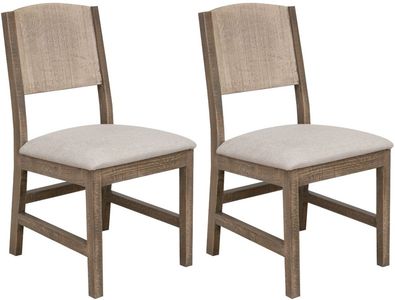 Chaise en bois durable avec assise en tissu doux, livrée entièrement assemblée - deux chaises par carton.