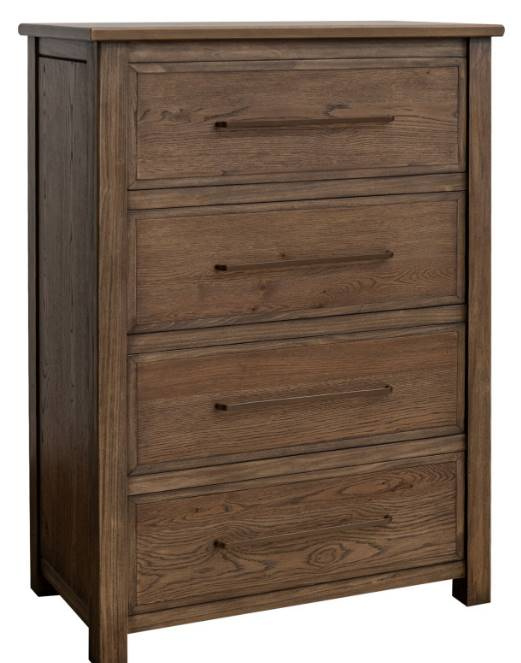 Quatre tiroirs. Queue d'aronde anglaise sur les façades des tiroirs en bois 100% massif. Patins en acier à sortie totale Hafele.
