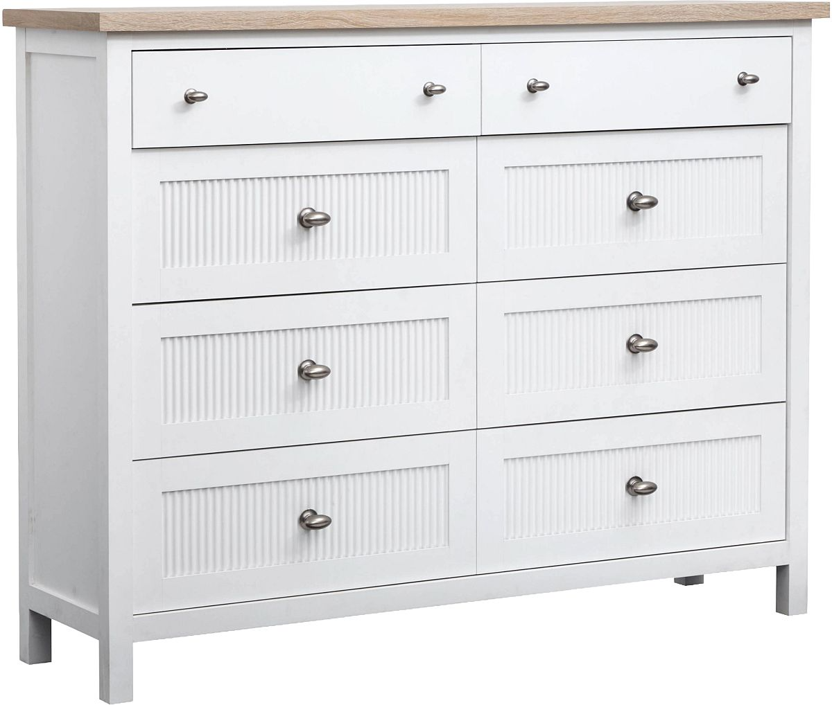 Les meubles de rangement sont conçus avec soin, avec des façades de tiroirs encadrées, des rainures décoratives et des tiroirs inférieurs encastrés qui ajoutent une touche de caractère et de charme. Que vous souhaitiez rafraîchir votre chambre à coucher ou créer un refuge douillet, la collection Windmill Harbour est le mélange parfait entre confort et design côtier intemporel.