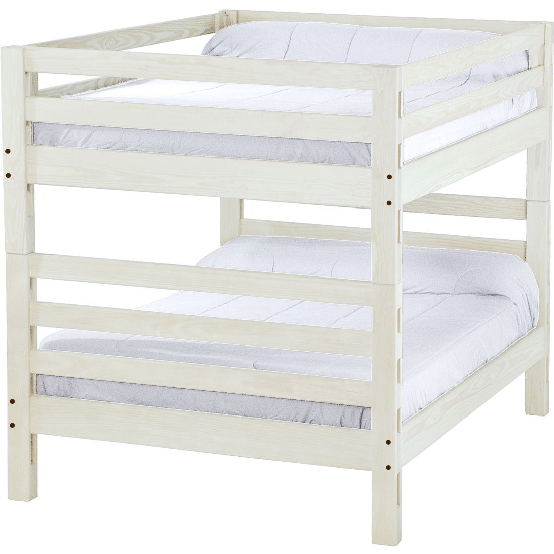 With built-in ladders at both ends, these bunk beds offer a cleverly built compact design to save you even more space. The sturdy, wide ladder ends make it easy for kids to climb up and down. Full length removable guardrails are included for both sides of the upper bed. The top of an 8” thick mattress will be 21" off the floor on the lower bed and 57” off the floor on the upper bed. All bunk beds and beds have been tested to accommodate over 450 pounds and are recommended for adult use. Options include a taller version to allow 8” more headroom under the bed for comfortable seating. Add optional drawers or a trundle bed for maximum use of your floor space