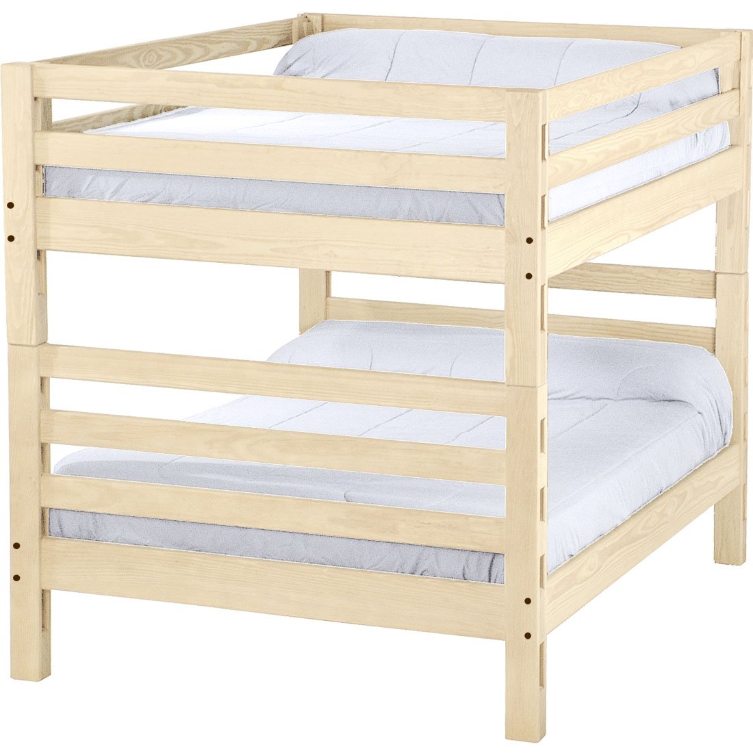 With built-in ladders at both ends, these bunk beds offer a cleverly built compact design to save you even more space. The sturdy, wide ladder ends make it easy for kids to climb up and down. Full length removable guardrails are included for both sides of the upper bed. The top of an 8” thick mattress will be 21" off the floor on the lower bed and 65” off the floor on the upper bed. All bunk beds and beds have been tested to accommodate over 450 pounds and are recommended for adult use. Add optional drawers or a trundle bed for maximum use of your floor space