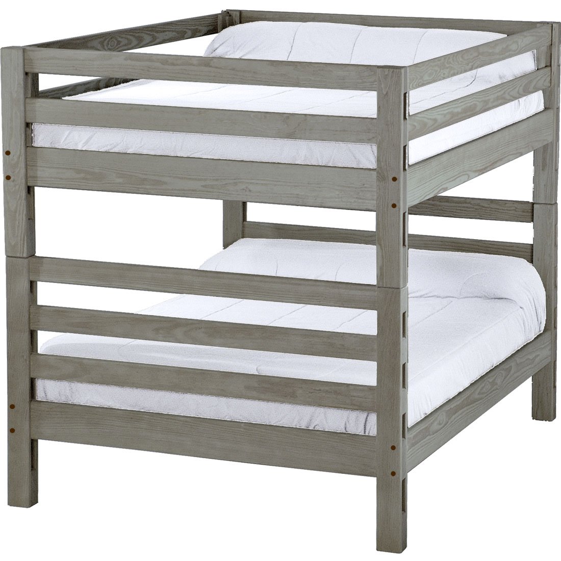 With built-in ladders at both ends, these bunk beds offer a cleverly built compact design to save you even more space. The sturdy, wide ladder ends make it easy for kids to climb up and down. Full length removable guardrails are included for both sides of the upper bed. The top of an 8” thick mattress will be 21" off the floor on the lower bed and 65” off the floor on the upper bed. All bunk beds and beds have been tested to accommodate over 450 pounds and are recommended for adult use. Add optional drawers or a trundle bed for maximum use of your floor space