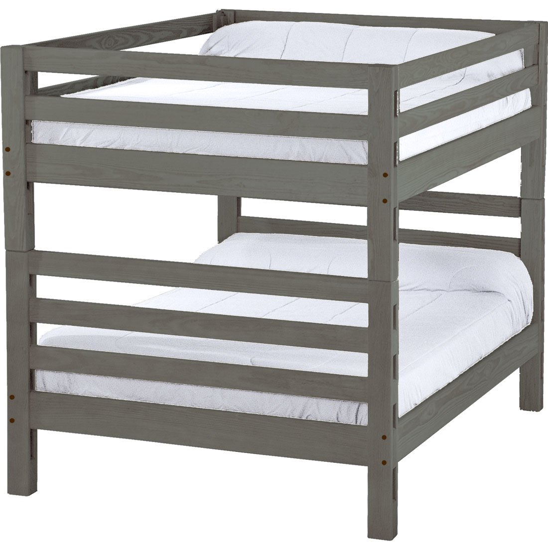 With built-in ladders at both ends, these bunk beds offer a cleverly built compact design to save you even more space. The sturdy, wide ladder ends make it easy for kids to climb up and down. Full length removable guardrails are included for both sides of the upper bed. The top of an 8” thick mattress will be 21" off the floor on the lower bed and 65” off the floor on the upper bed. All bunk beds and beds have been tested to accommodate over 450 pounds and are recommended for adult use. Add optional drawers or a trundle bed for maximum use of your floor space