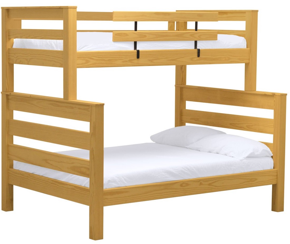 TimberFrame bunk beds feature massive corner posts with thick ladder rungs in between using mortise and tenon construction. A removable guardrail is included on the front with a full-length guardrail at the rear of the upper bed. Add optional drawers or a trundle bed for maximum use of your floor space. Ready for a mattress, no foundation required. The top of an 8” thick mattress on the lower bed will be 21” and on the upper bed will be 64” off the floor. All bunk beds and beds have been tested to accommodate over 450 pounds and are recommended for adult use.