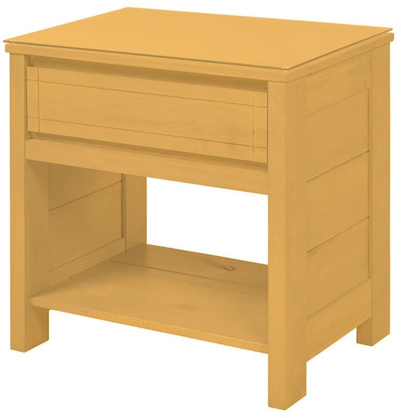 Dessus : Pin jaune du sud massif avec un dessus en verre trempé ; Arrière : Pin jaune du sud massif ; Fond de tiroir : Contreplaqué