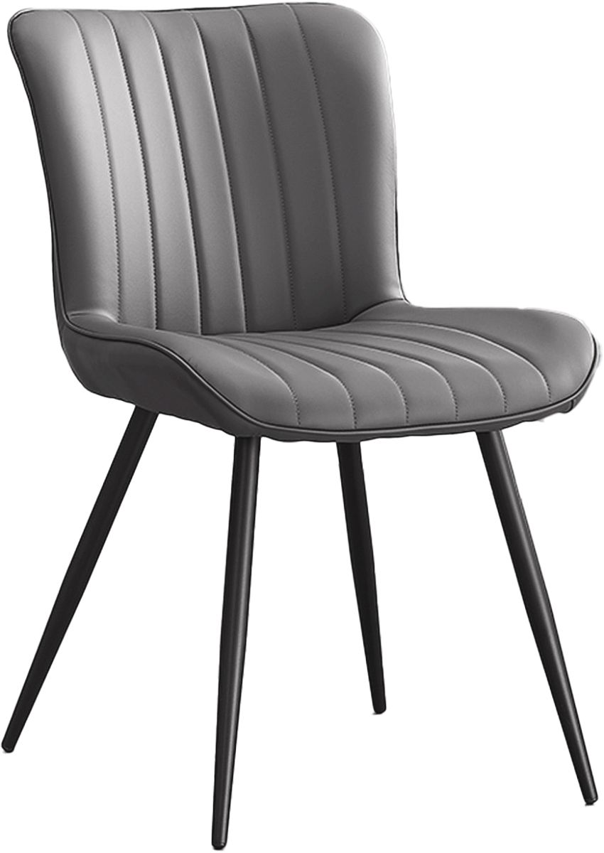 Fabriquées avec un cadre métallique noir robuste et recouvertes d'un tissu doux aspect cuir gris, ces chaises allient une construction solide à un style tendance