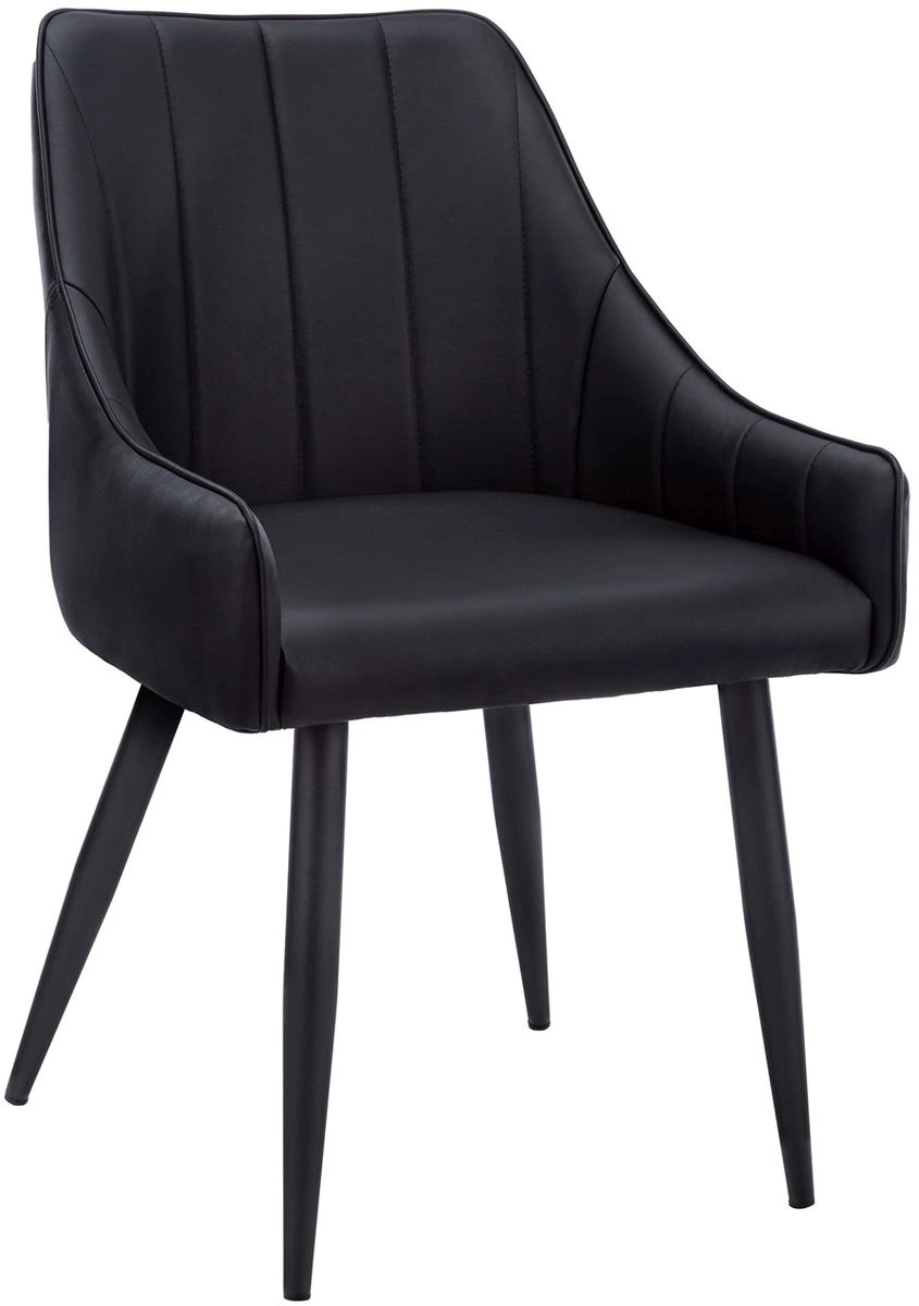 Vous voudrez rester assis à table dans ces chaises de salle à manger rembourrées extrêmement confortables rembourrés en similicuir noir. Avec un capitonnage à canaux verticaux pour une sensation de luxe, le dossier et les côtés se courbent autour du siège et s'inclinent pour former des accoudoirs bas et intégrés.En savoir plus