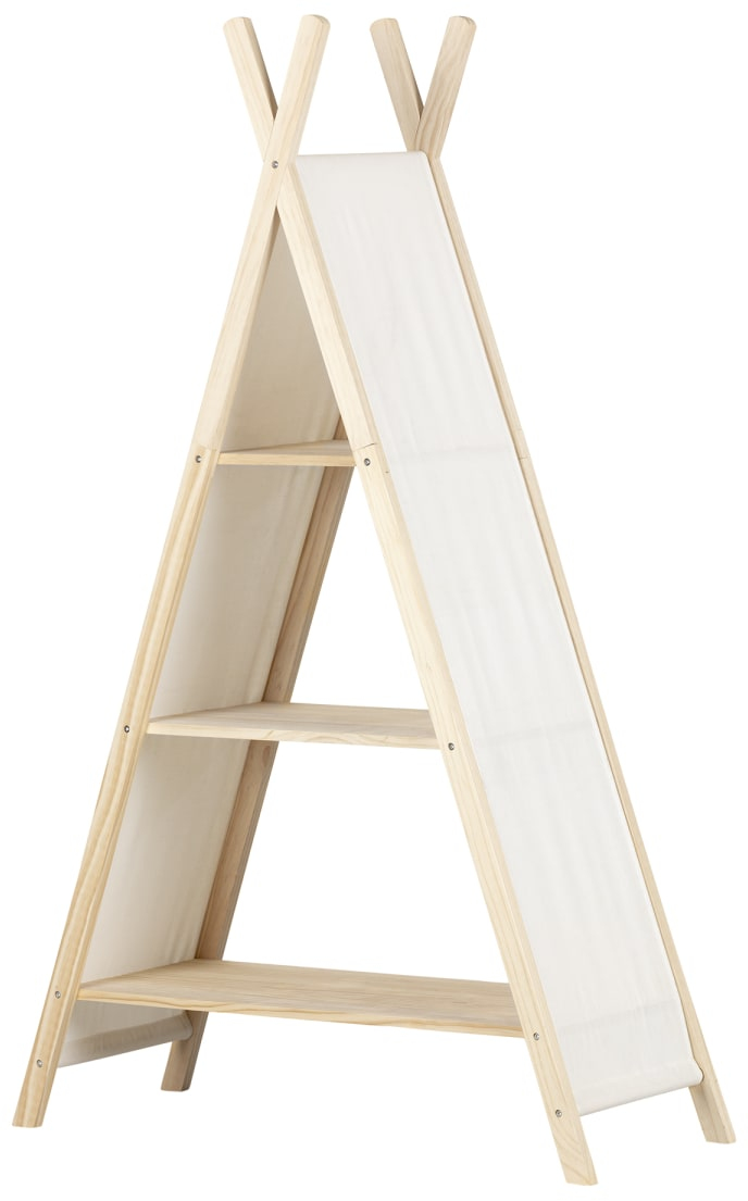 RANGEMENT POUR CHAMBRE D’ENFANT : Le look original en forme de tipi de cette étagère à 3 tablettes fixes offre du rangement supplémentaire dans un format amusant, idéal pour une chambre de tout-petit.