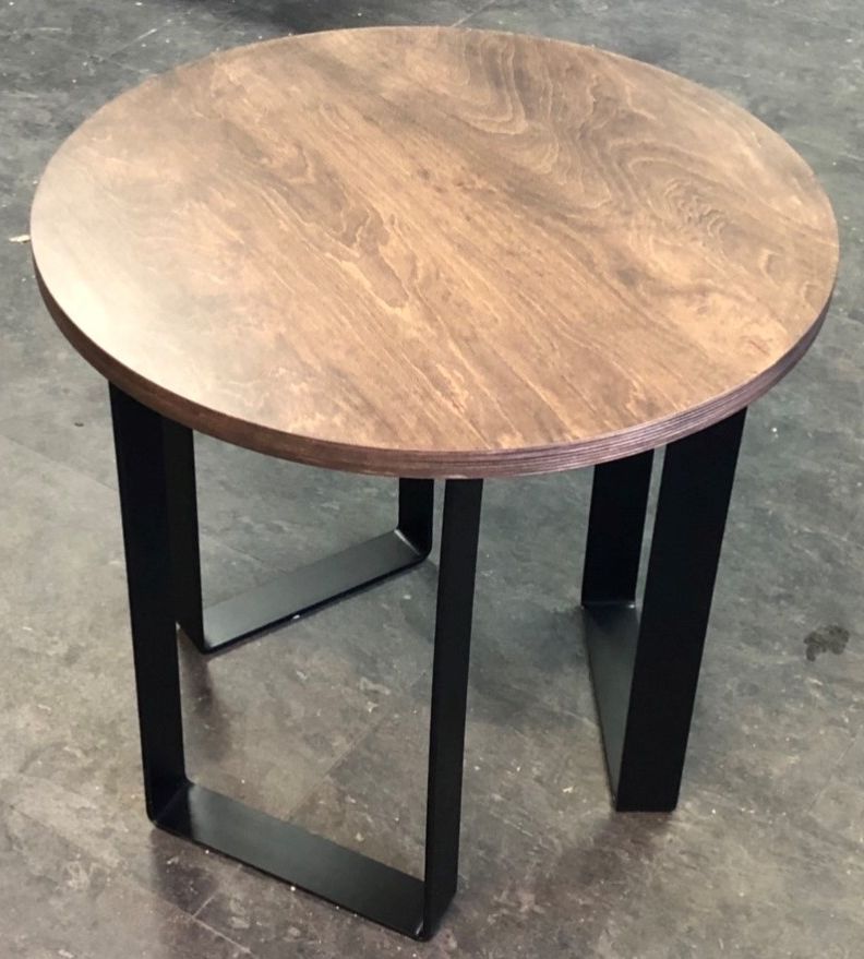 Wood top is circled by a steel frame, letting the wood appear to be thin.