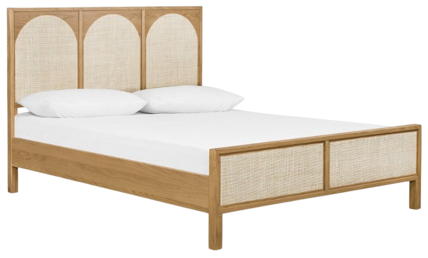 Wood-backed cane arches and panel footboard detailing