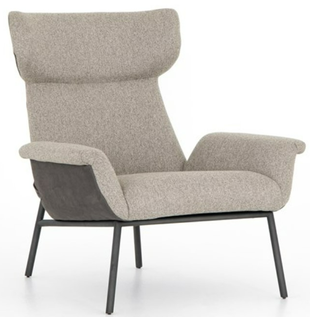 Turn up the drama. A strikingly sculpted wing chair mixes materials to modern effect, with light, herringbone-like seating cradled by buttery top-grain leather exclusive to Four Hands. Grommet straps at back seams lend a detail-driven finishing touch.En savoir plus