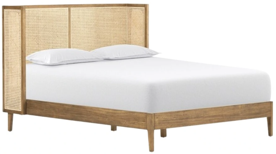 The Four Hands Antonia Queen Panel Bed features a beige upholstered headboard and footboard, framed in toasted parawood for a warm, natural touch. Its soft fabric and earthy wood tones create a balanced look, bringing elegance and subtle charm to any bedroom. Ideal for a relaxed, refined aesthetic.En savoir plus