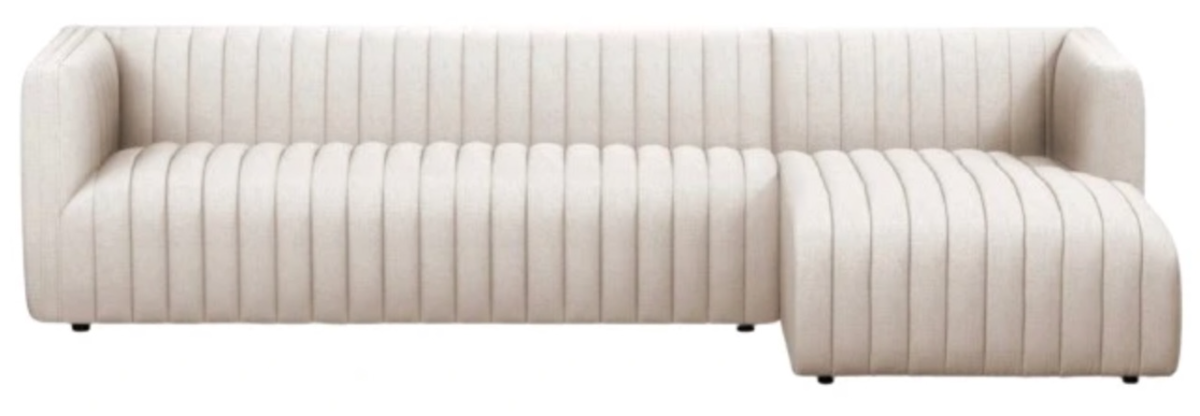 The Augustine 2-Piece Chaise Sectional features a dramatically channeled sofa with upholstery that delivers a crisp, clean look and a sumptuous sit. This two-piece sectional, with a right-arm facing chaise, is perfectly sized for smaller spaces, offering a stylish and comfortable seating solution.En savoir plus
