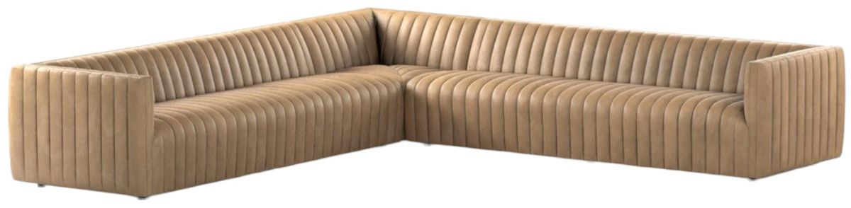 The Augustine 3-Piece Sectional features a dramatically channeled sofa wrapped in top-grain leather, offering a mature, clean look inspired by modern menswear. This three-piece L-sectional is perfectly sized for larger spaces, blending sophisticated style and comfort to elevate your living room with elegance.En savoir plus