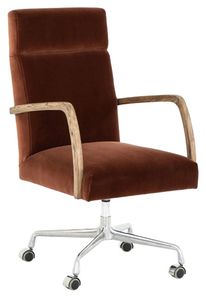 The Bryson Desk Chair is a high-style piece designed for both comfort and sophistication. It features upholstery that covers a sculpted seat and back, creating a refined, luxurious look. The chair is supported by metal casters, making it easy to move around the workspace with ease.En savoir plus