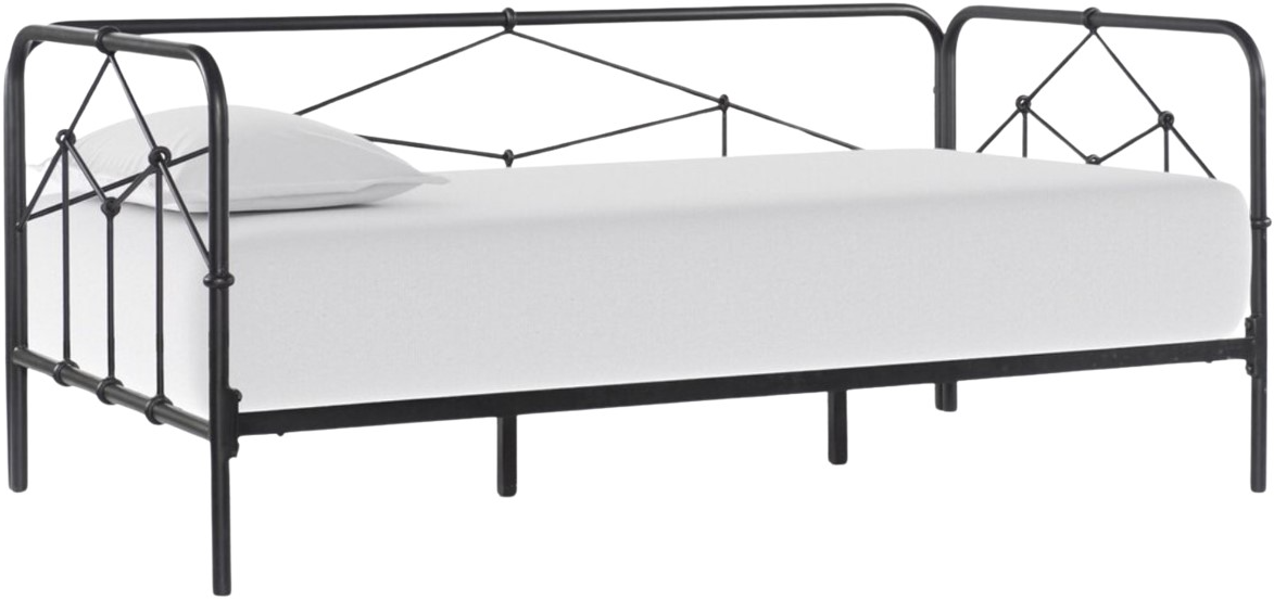 Safari styling gets a modern reboot. Linen-blend upholstery of ash grey lays a texture-rich base for a forward-thinking bedroom look. Black leather straps secure decorative headboard pillows, suspended for eye-catching effect. Box spring required.En savoir plus