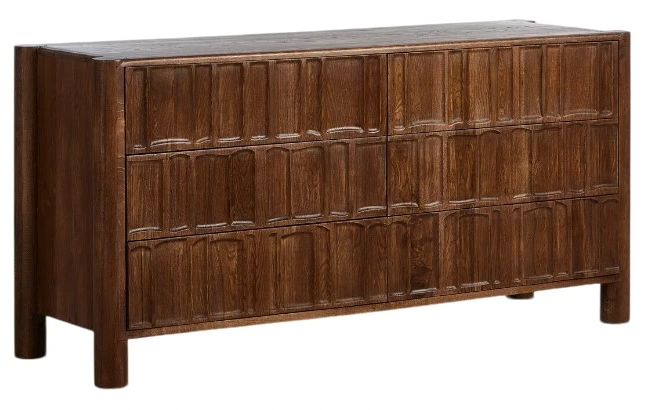 The Ezri 6-Drawer Dresser blends organic carving with floor-to-top cylinder legs, creating a primitive yet refined look. The varying grain colors of the wood enhance the piece’s individuality, ensuring each dresser is one-of-a-kind. This design seamlessly combines natural beauty with functional storage.En savoir plus
