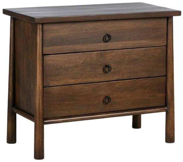 Inspired by French antique design, this dresser stands on round tapered legs with a prominent overhang top. Made of mango wood with cast iron key ring pulls, three drawers make it a versatile choice as a dresser or nightstand.En savoir plus