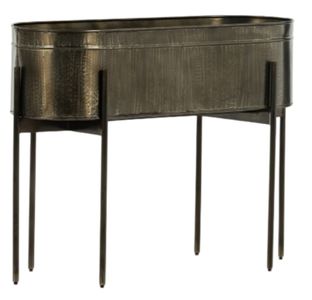 The Jed Iron Large Planter features slim, dark brass-finished iron legs that provide a modern, elevated base for a round planter. Its spacious design comfortably accommodates three large plants, making it an ideal choice for showcasing greenery. A plastic plant liner is recommended for use (not included).En savoir plus