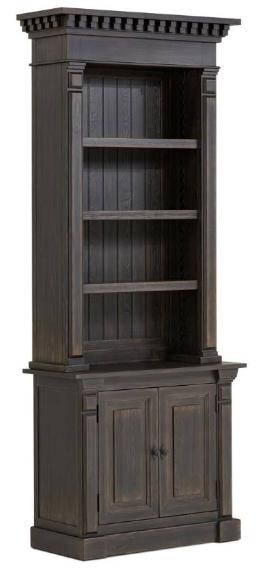 By the makers at Van Thiel, known for their antique-inspired pieces and hand-applied finishes. This solid pine bookcase inspired by European antiques features cornice details, planked-back shelving above and a two-door cabinet below. A hand-distressed black finish gives it the look of an heirloom.En savoir plus