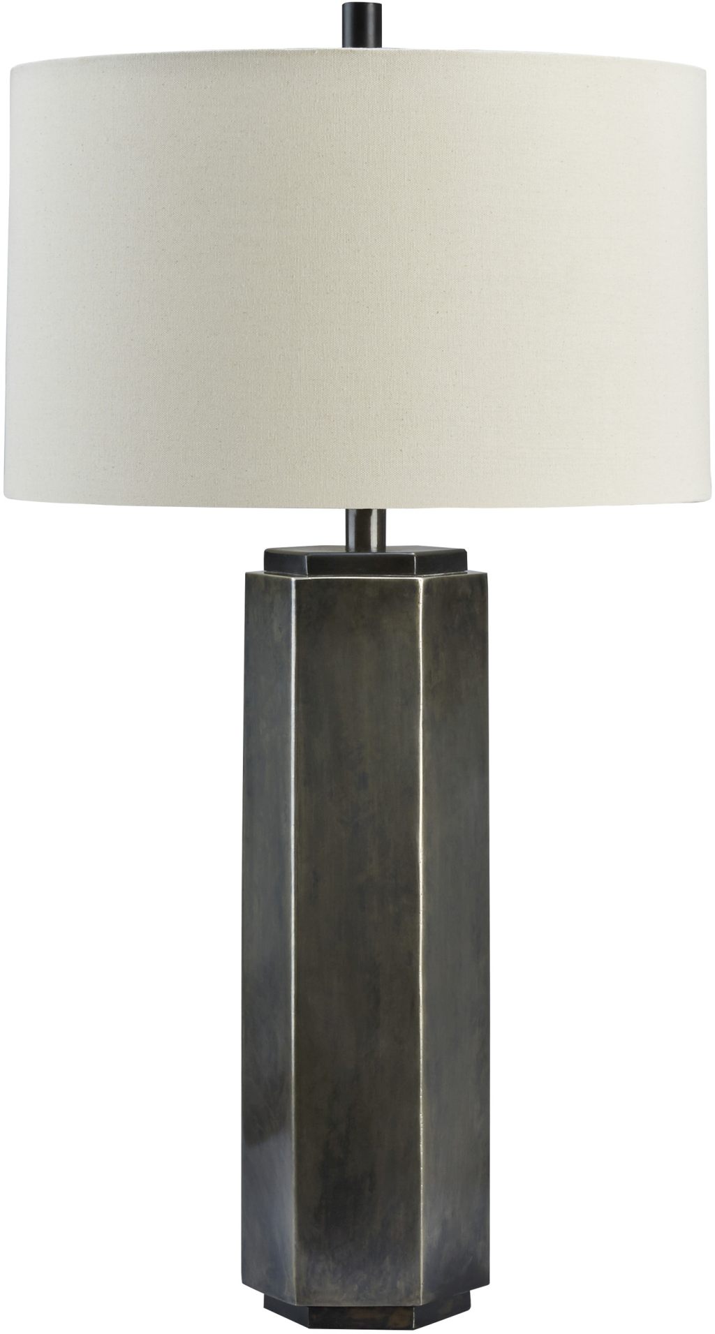Pourquoi se contenter de luminaires standards alors que cette lampe de table ajoute tant de chaleur et de style ? Cette lampe de forme hexagonale présente une finition étain vieilli et noir surmontée d'un abat-jour tambour. Qu'il s'agisse d'éclairer un salon, une chambre ou une entrée, cette pièce volera la vedette partout où elle sera posée.En savoir plus